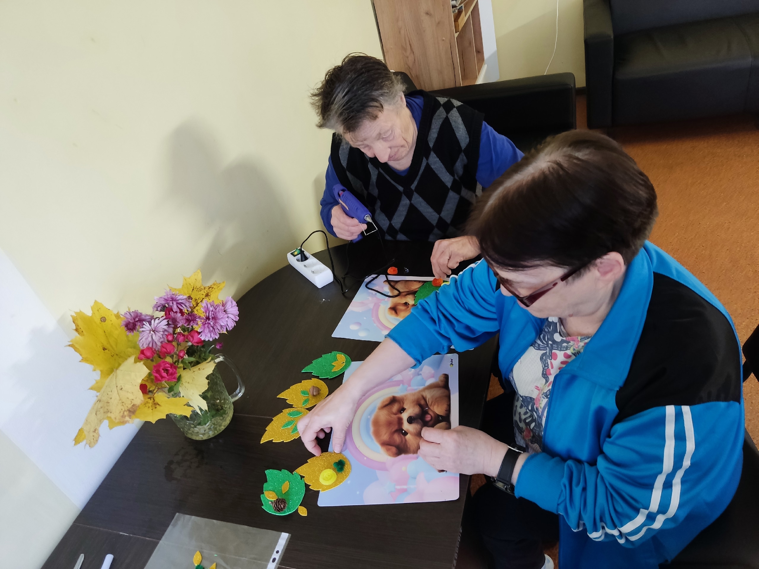 Проживающие 5 корпуса в месте с социальным работником в последний месяц осени сделали броши, раскрасили готовые фигуры грибов из гипса и украсили фотозону, чтобы осень запомнилась нам яркими золотыми красками и прекрасным настроением!