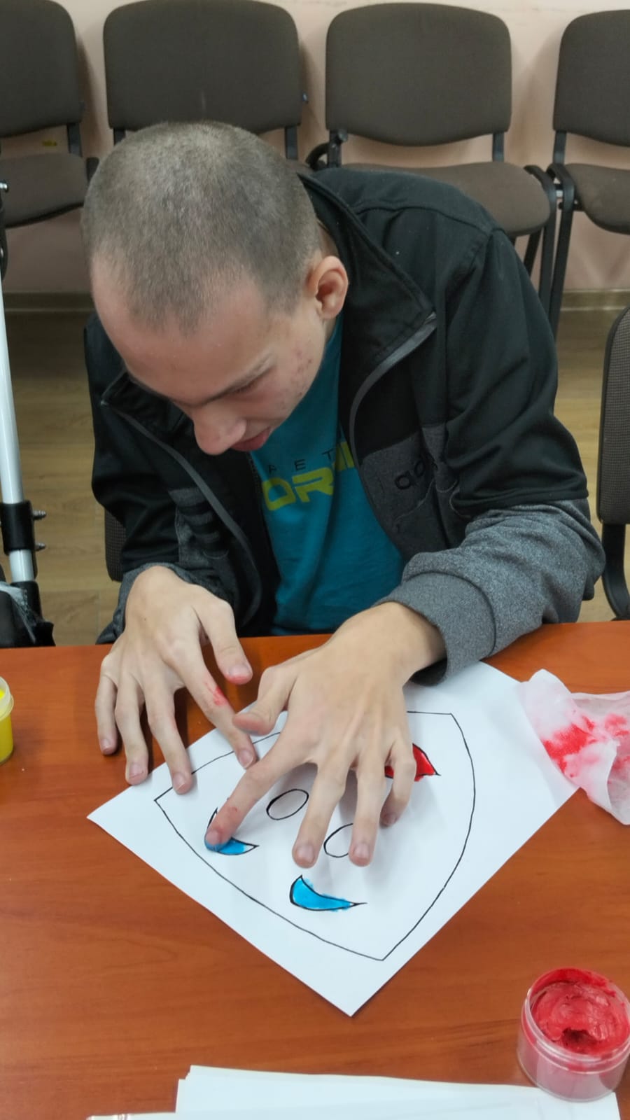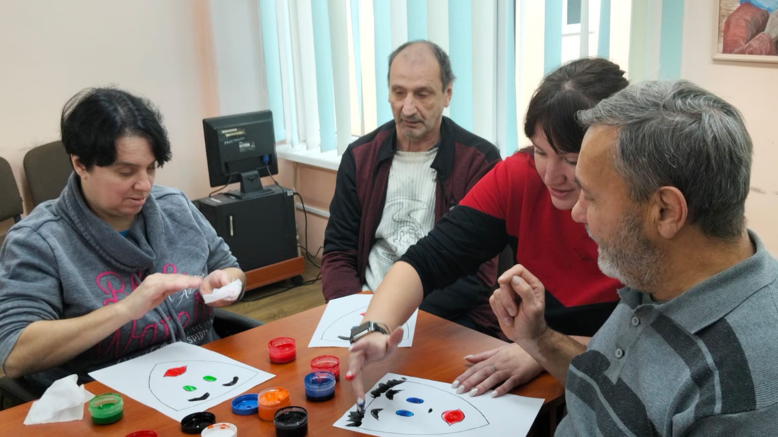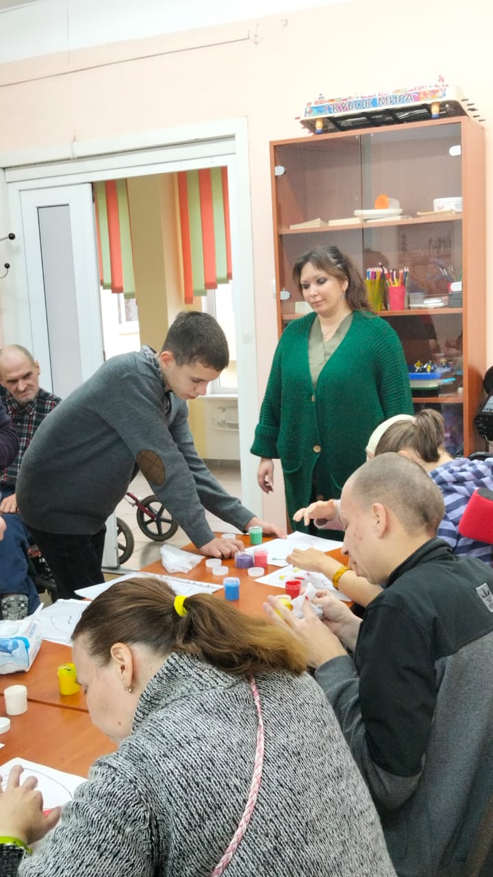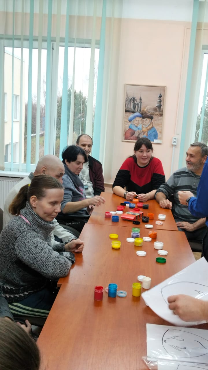 Обучающиеся с педагогами-психологами А.В.Соломиной, Э.Э.Салаевым провели координационные тренинги, разные модификации техники «Мозготрон», применили одну из направлений арт-терапии «Маска терапия» с жителями пансионата.