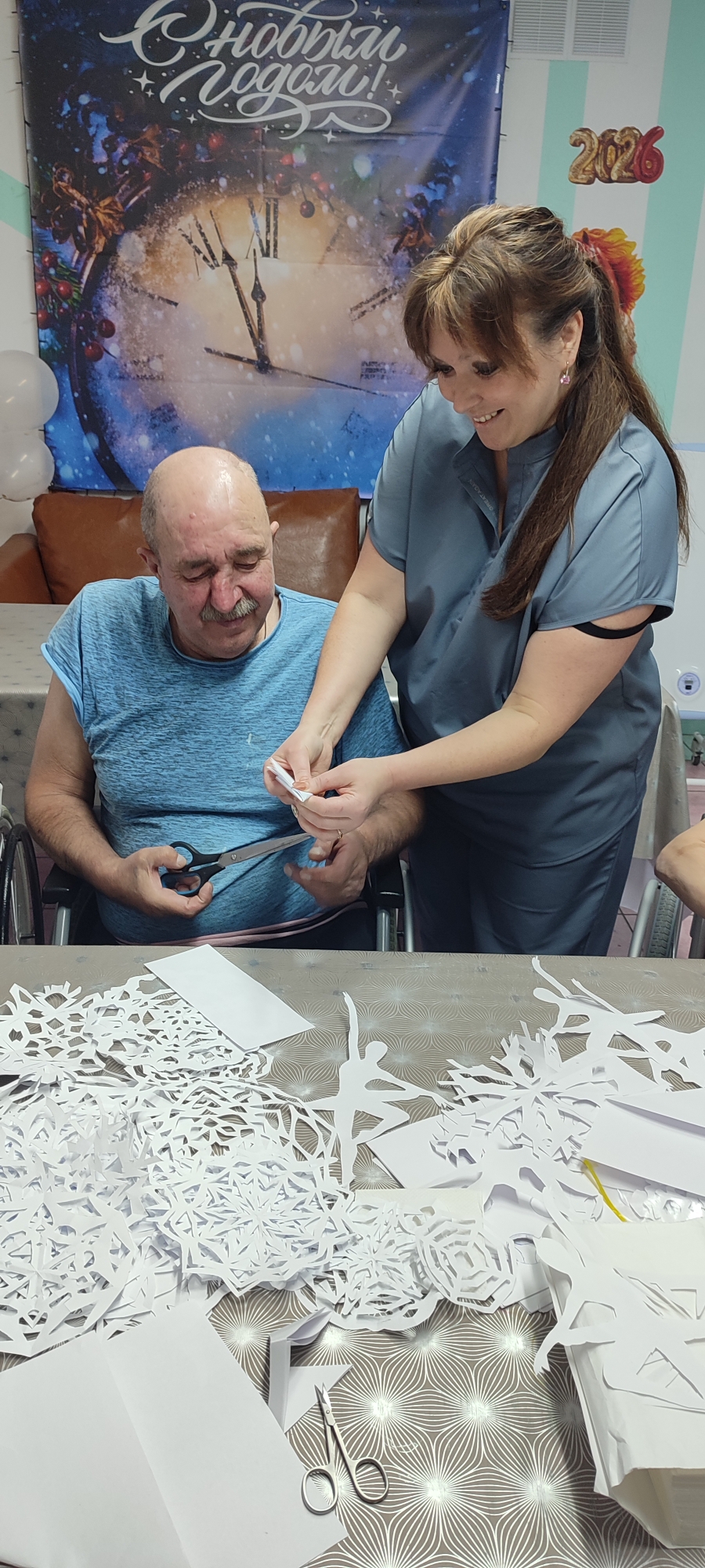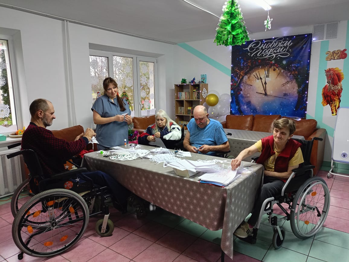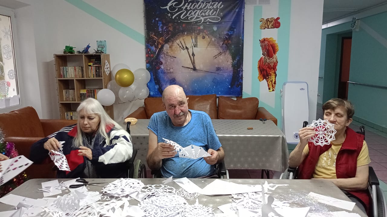 В нашем пансионате состоялся мастер-класс, на котором жители учреждения под руководством опытных наставников создавали красивые снежинки из бумаги.