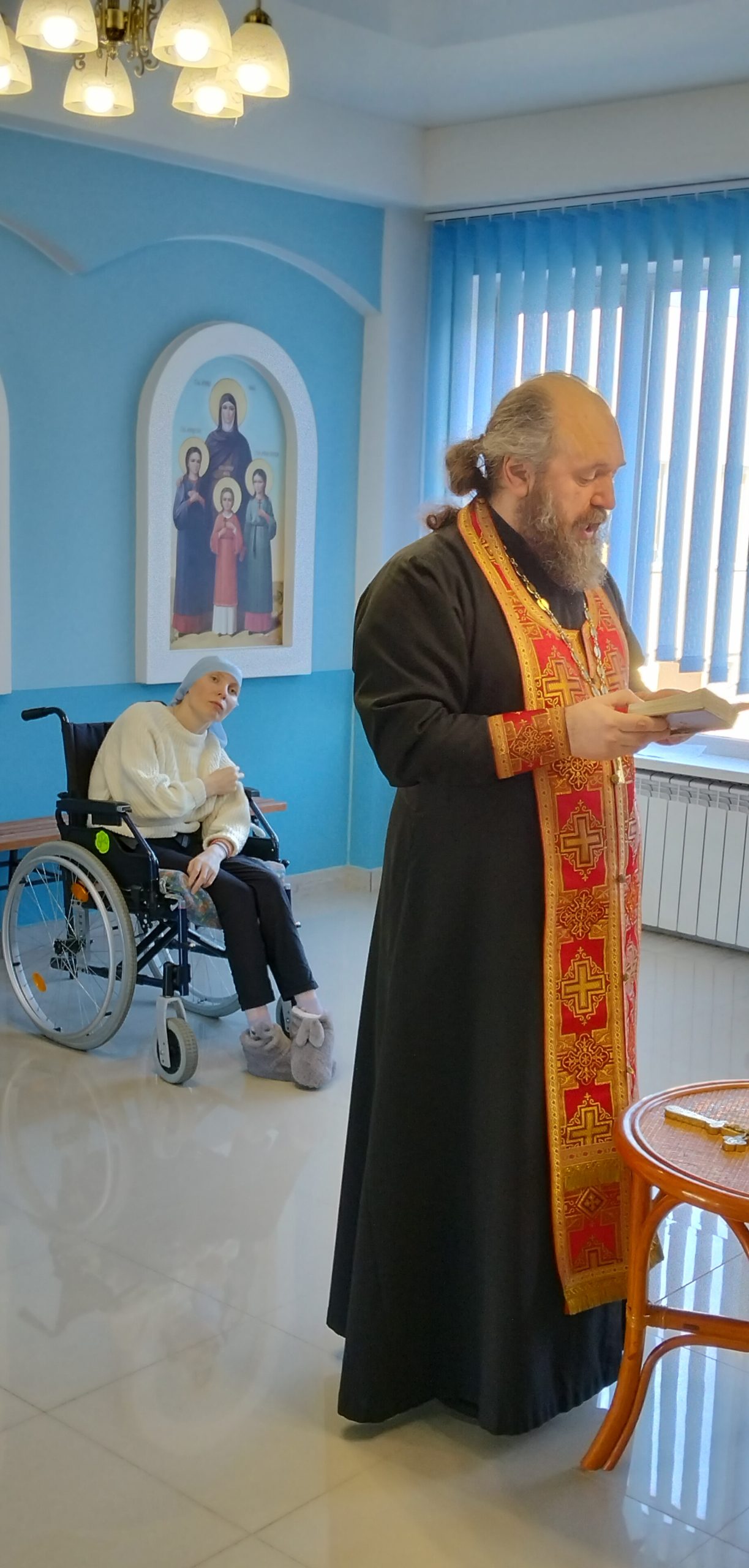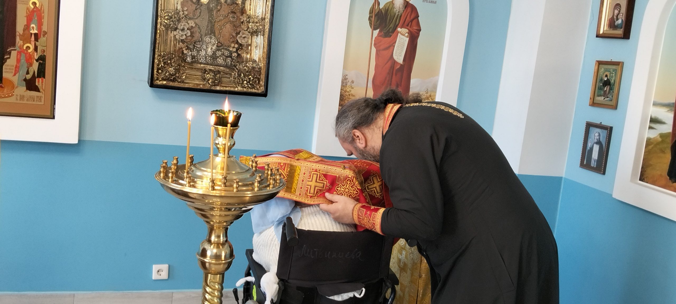 Протоиерей Михаил Щербаков – клирик собора Трёх Святителей города Советск в часовне в честь Иконы Божьей Матери «Всех скорбящих Радость» для жителей пансионата совершил обряды Таинства Исповеди и Причастия.